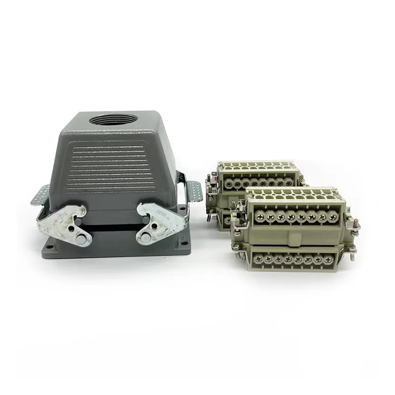 La soluzione tradizionale utilizza scatole di giunzione per trasmettere segnali e potenza. Tuttavia, dopo che la linea viene disconnessa per il trasporto, il debugging risulta piuttosto difficile. Vengono adottati i connettori CHTAR durevoli TG Heavy Duty a 32 pin, che non solo risolvono il problema di connessione, ma anche il comodo metodo di collegamento e scollegamento consente ai clienti di ottenere il doppio del risultato con la metà dello sforzo. Questo connettore per carichi pesanti è adatto per connettori HE, HD, HEE, HDD a 32 pin e altri connettori per carichi pesanti. Può essere utilizzato insieme a 2 connettori HE-016-M o HE-016-F e anche con 2 connettori HB-006-M o HB-006-F. Questo connettore adotta il metodo di ingresso dall'alto.