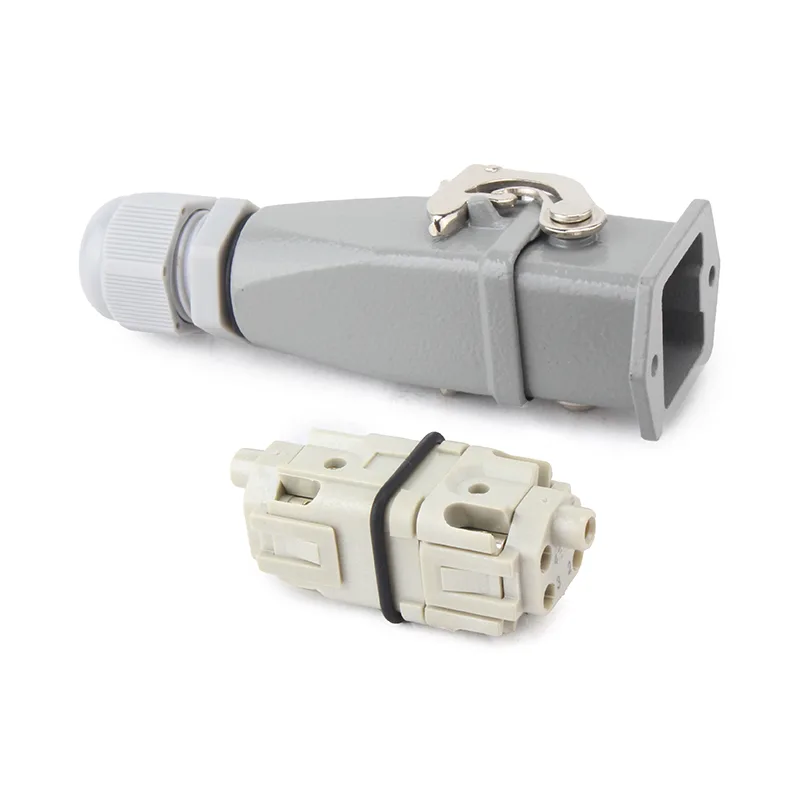 La gamma HA di connettori per carichi pesanti viene utilizzata per il collegamento di cavi di posizione di piccole dimensioni. Sono disponibili 3+1P,4+1P,10P e 16P. Può essere abbinato all'alloggiamento con ingresso dall'alto e all'alloggiamento con ingresso laterale.