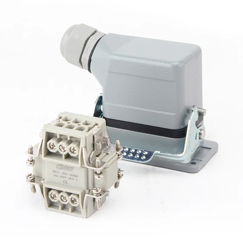 Questi connettori CHTAR a 6 pin AG per carichi pesanti sono ampiamente utilizzati con HE HD HEE, HDD. È la base e la parte femmina dell'alloggiamento dei connettori per carichi pesanti. È realizzato in alluminio e progettato come fibbia singola. Tipo di morsettiera per carichi pesanti facile da usare.
