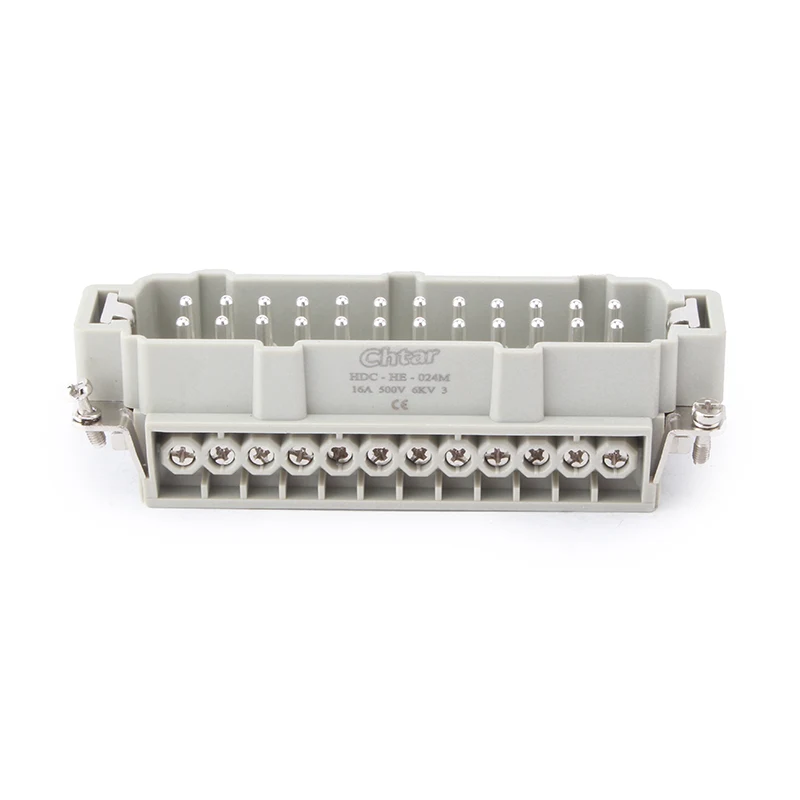 Questo resistente connettore plug-in da 16 A HE-024-F e HE-024-M di CHTAR è dotato di connettori femmina e maschio. È compatibile con il connettore per carichi pesanti con guscio H24B di HDC-HE-024. È costituito da un robusto involucro in PC e perni in ottone placcato argento. I pin placcati in argento forniscono un'eccellente conduttività e vantaggi operativi per i connettori per carichi pesanti con inserto a 24 pin M/F. Facciamo affari con persone in tutto il mondo e conosciamo le normative locali!