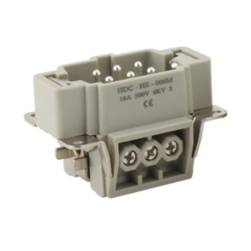 I connettori per carichi pesanti con inserto a 6 pin M/F funzionano con una corrente di 16 A. Sono 16 pin a contatto con i fili. Offre diverse condizioni di lavoro ed è ampiamente utilizzato nelle industrie automatiche e nei tipi di collegamento elettrico della macchina.