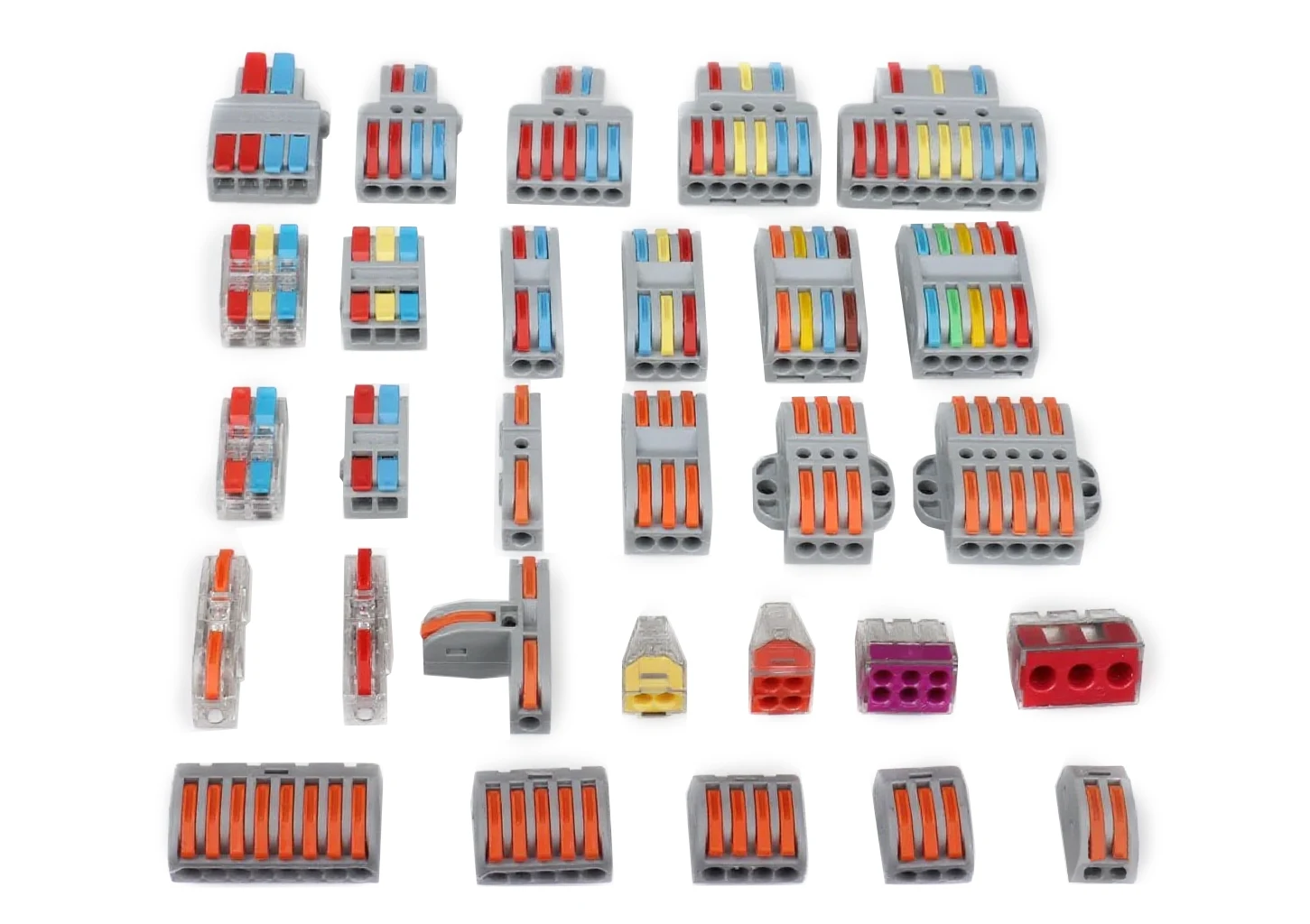 I connettori rapidi per cavi di giunzione con leve sono connettori push-in ben noti. Sono dispositivi di connessione elettrica progettati per unire in modo sicuro due o più conduttori di rame rigidi o intrecciati. La loro funzione principale è quella di creare una giunzione affidabile, permanente e senza manutenzione nel cablaggio elettrico senza la necessità di strumenti come cacciaviti o di tecniche come torcitura e nastratura.