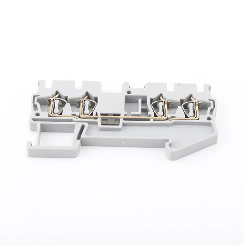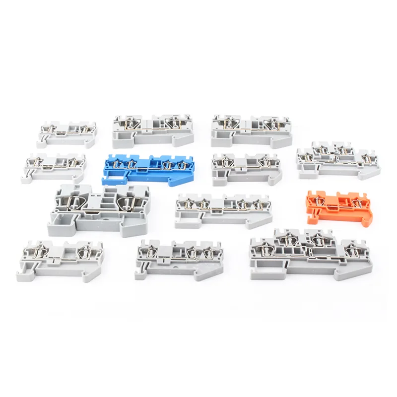 Le morsettiere a molla su guida Din ST2.5 QUATTRO sono dispositivi di collegamento elettrico generalmente montati su guide all'interno di armadi di controllo o apparecchiature per cablaggio e manutenzione rapidi. Le morsettiere sono generalmente dotate di materiali isolanti e strutture di isolamento fisico per prevenire cortocircuiti, scosse elettriche o cavi allentati, migliorando così la sicurezza del sistema.