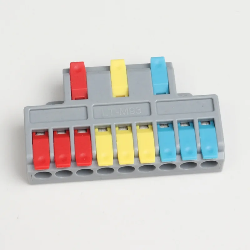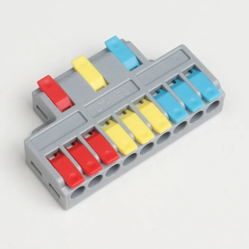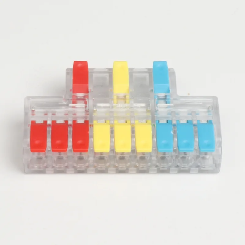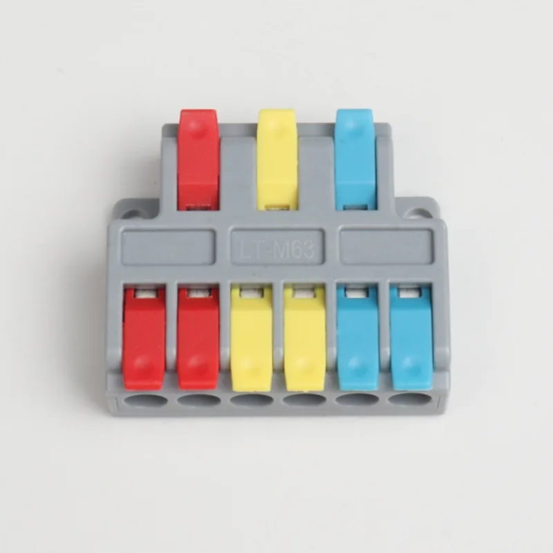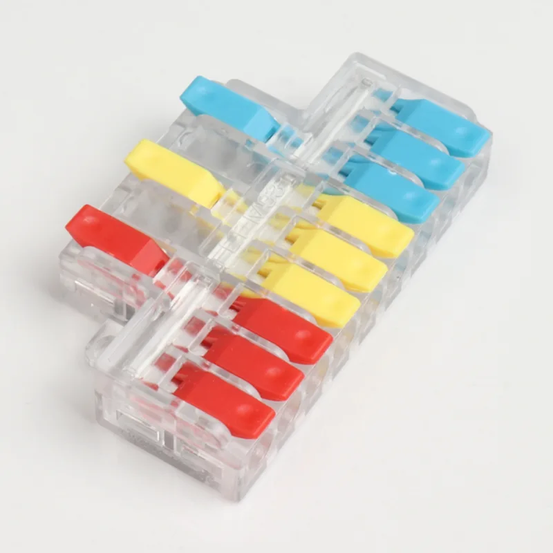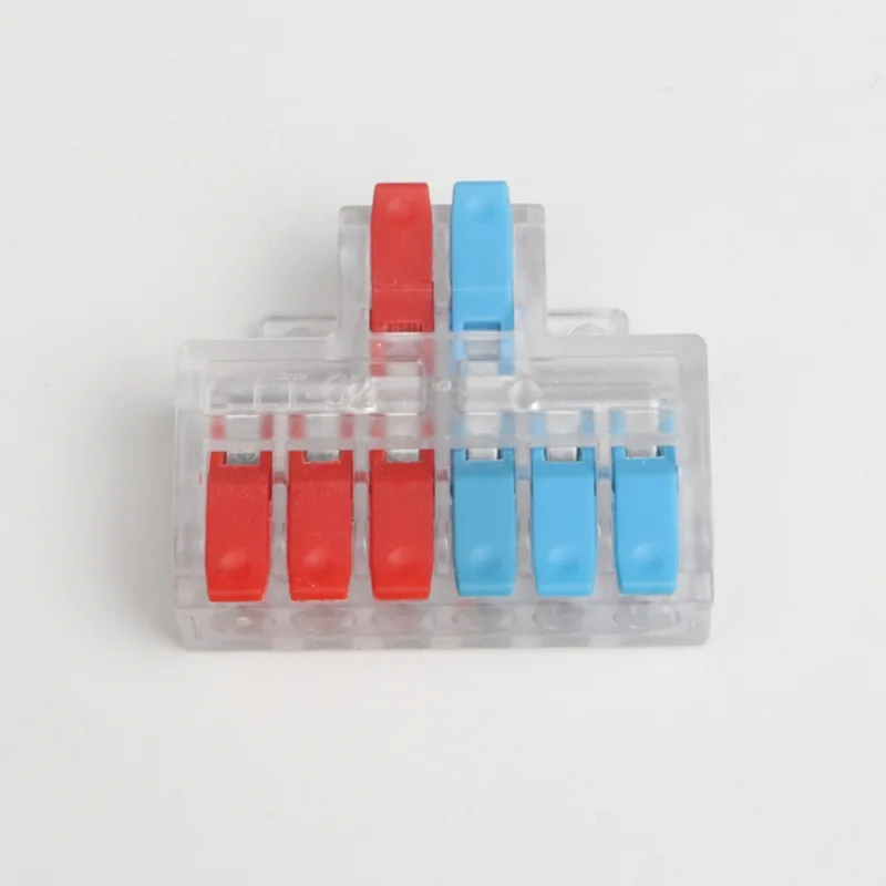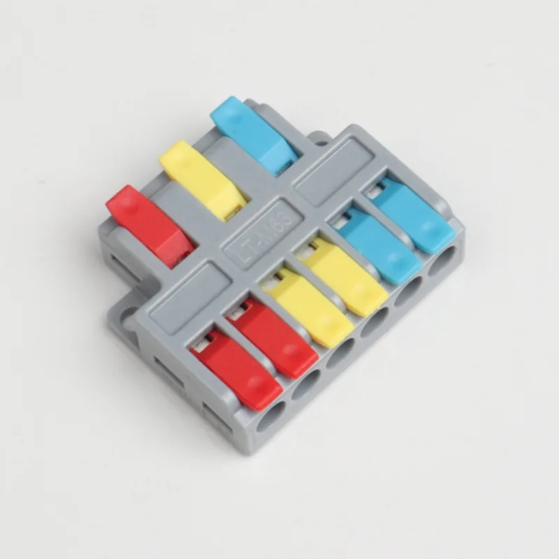 I connettori rapidi per cavi di giunzione Mini a due ingressi e quattro uscite hanno una forma ridotta rispetto alla nostra normale gamma di terminali di cablaggio di distribuzione. La versione mini può essere utilizzata all'interno di piccole custodie stagne. Sono realizzate con divisori delle maniglie di colore diverso per realizzare la differenziazione della direzione del cablaggio.